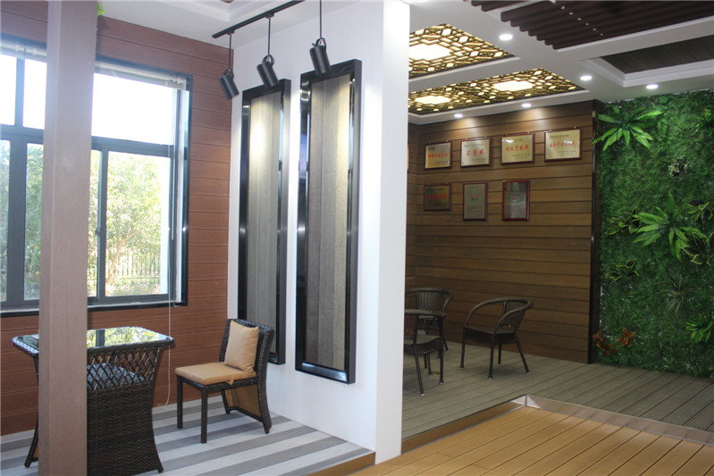 华塑公司样品展厅历时1月之久已升级完成。将原来的室内陈列式样品展厅更改为更具展示性的开放型展厅,展厅涵盖地板、浴室板、墙板、围栏、藤架等全线商品,样品与成品展示相结合,满足观赏性的同时也提高了客户的体验度。