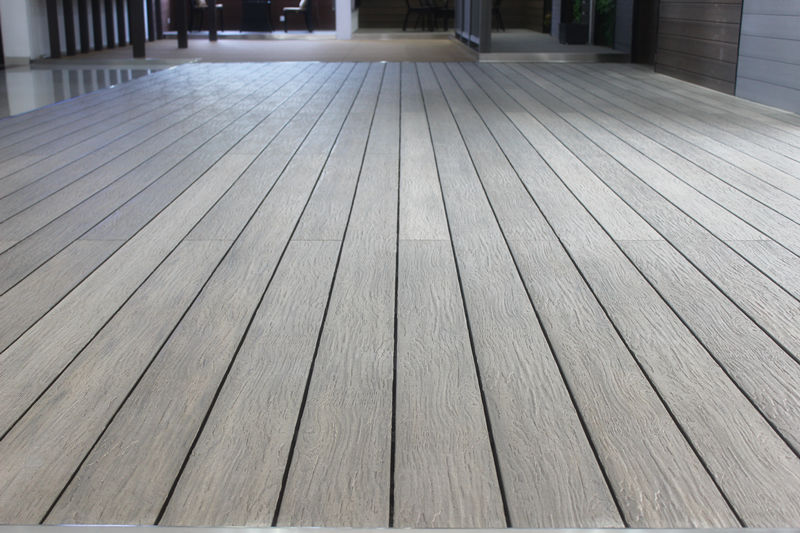 地板区域设计铺装含有共挤地板,一代普通木塑地板及深压纹系列。